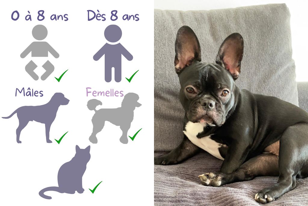 Havana, 5 ans et demi, est une adorable bouledogue française, ok tout : humains, enfants, chiens et même chats ! Un peu timide quand elle ne connaît pas, mais dès qu’elle accorde sa confiance, c’est un vrai concentré d’amour et de tendresse.