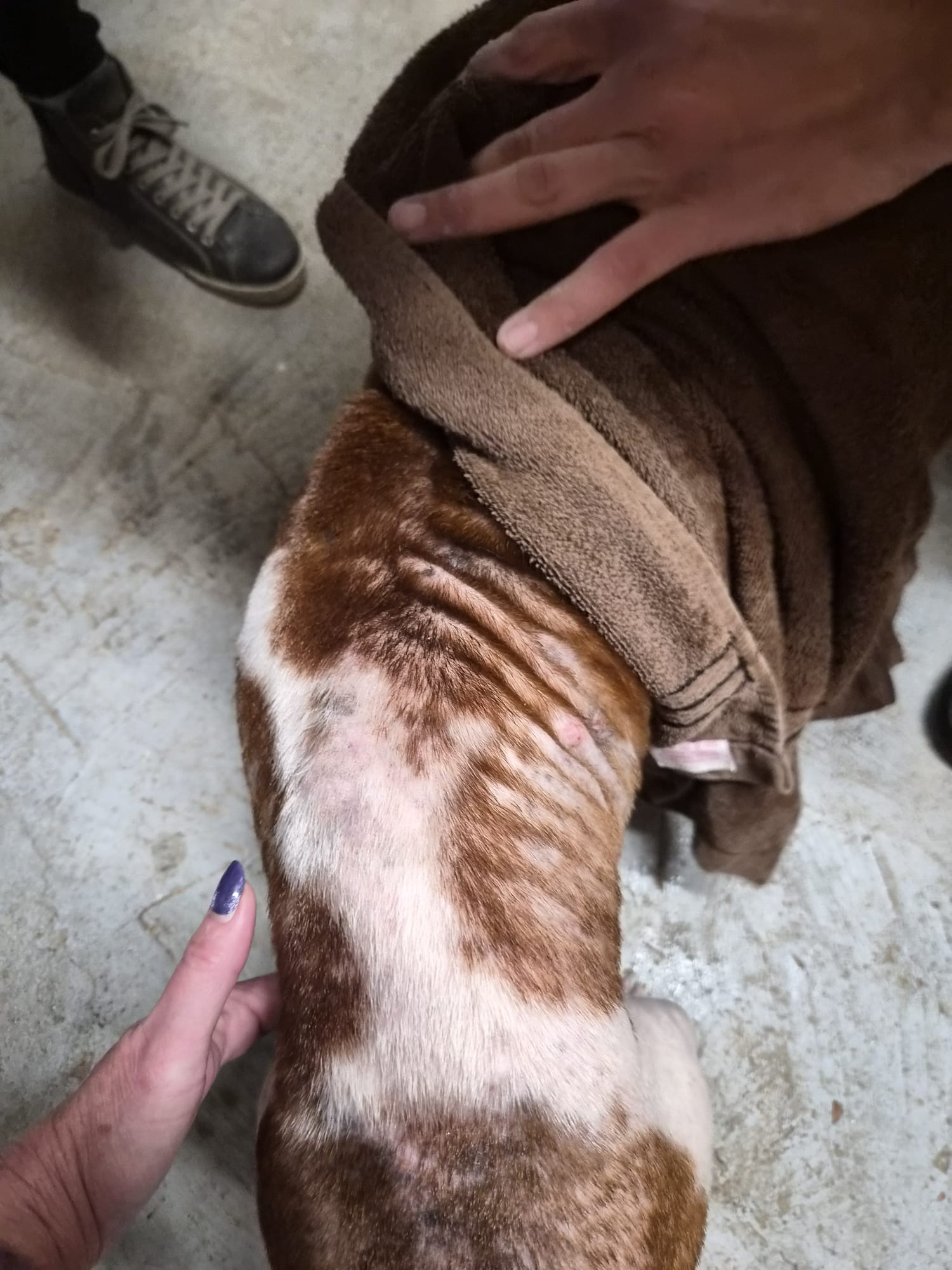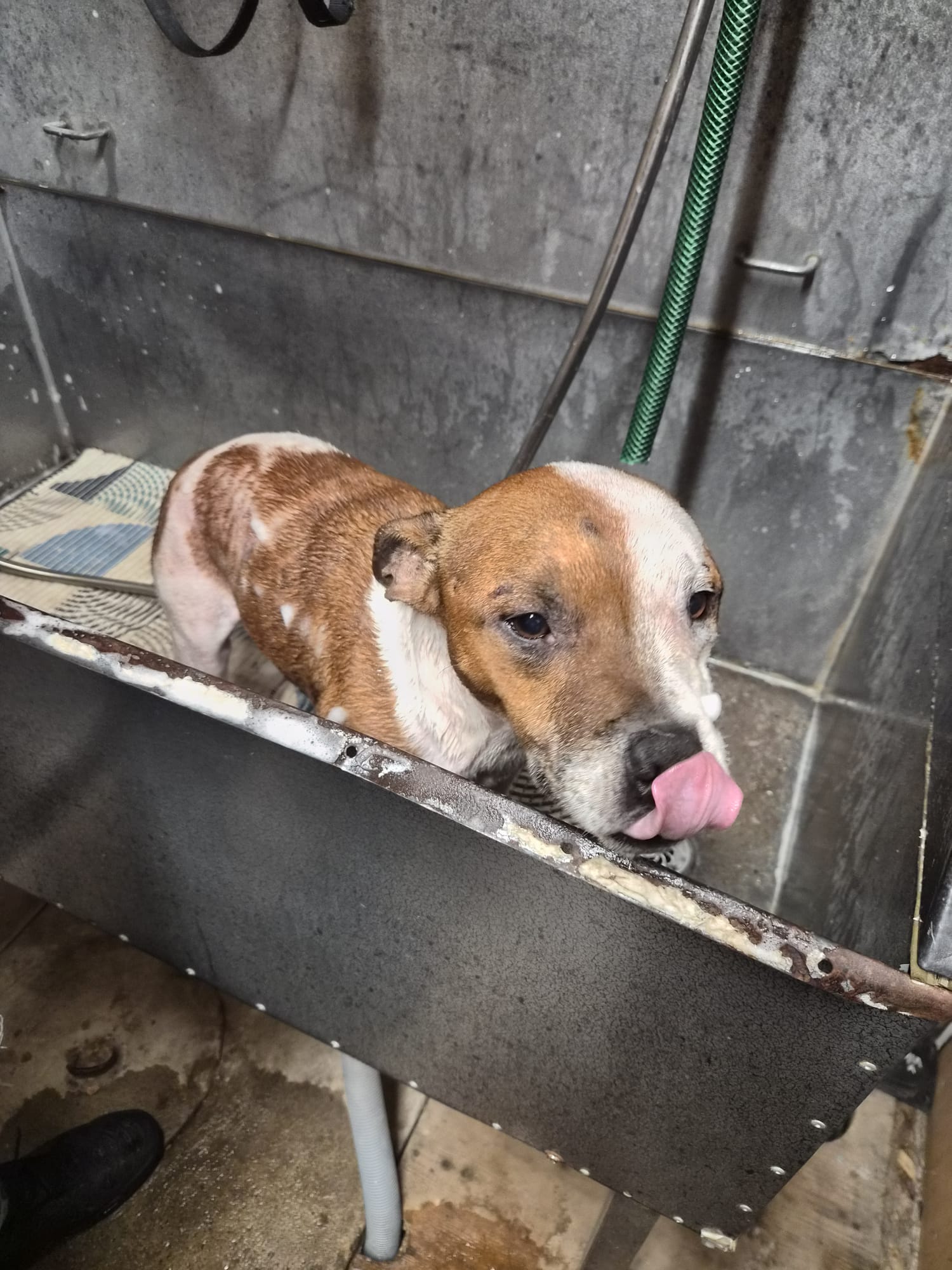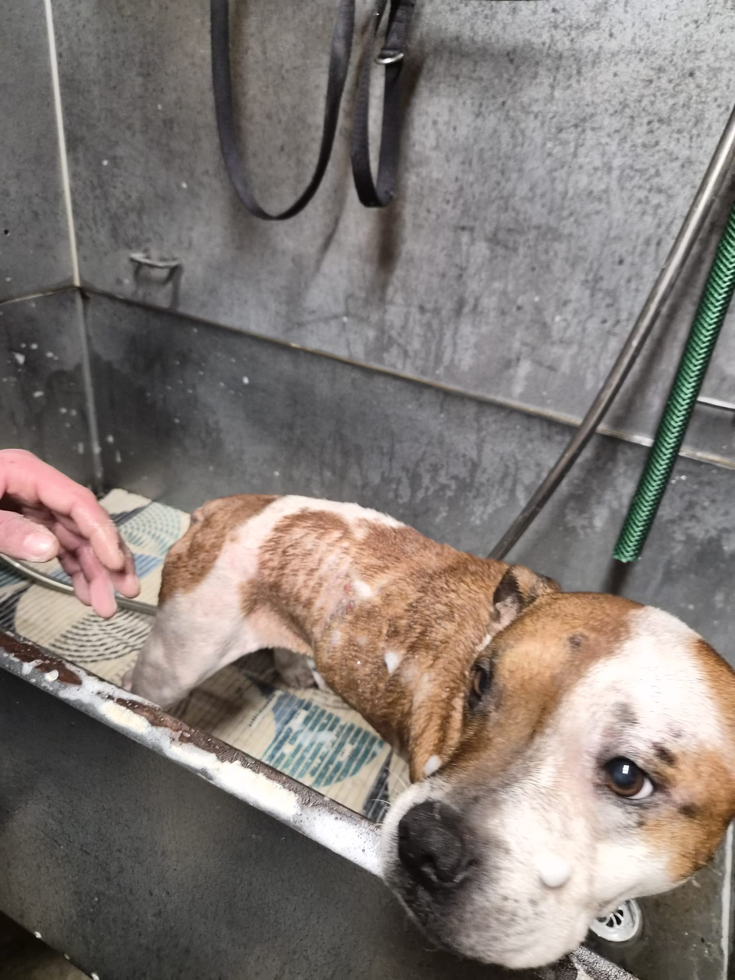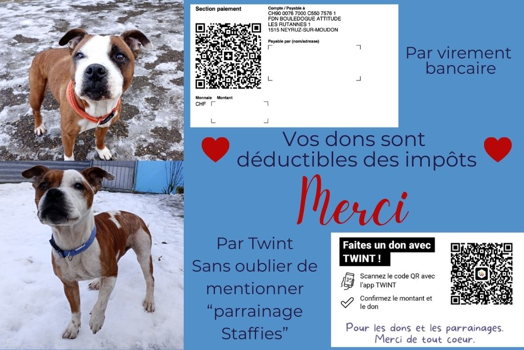Marvel, 9 ans, adorable Staffie que nous avons accueilli avec sa copine Hela en urgence. Leur famille traverse une détresse profonde… et quand la vie vacille, ce sont parfois les soins vétérinaires qui passent en dernier. Ici, pas de jugement, juste deux chiens à aider et beaucoup d’amour à leur donner.
