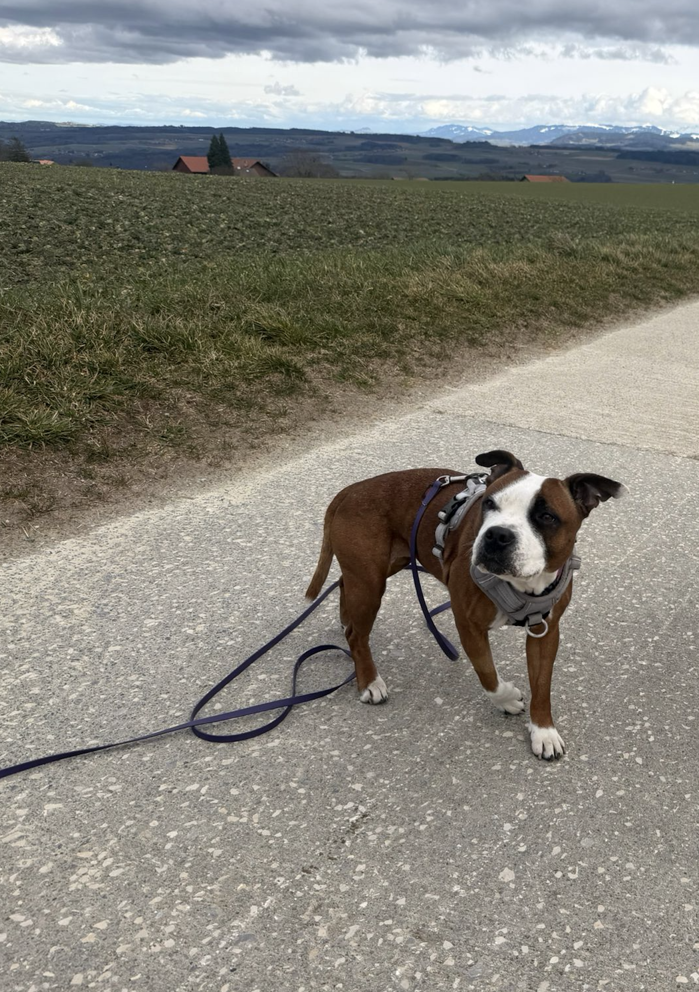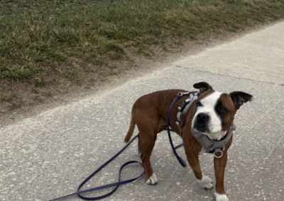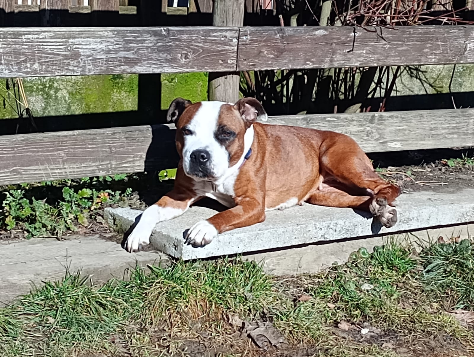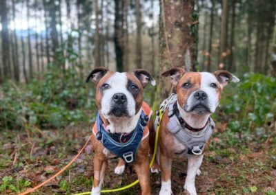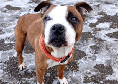 Hela, staffie de 7 ans, est une chienne adorable, ok avec tout… sauf les chats. Nous l’avons accueillie avec son compagnon Marvel suite à une situation de grande détresse vécue par leur famille.