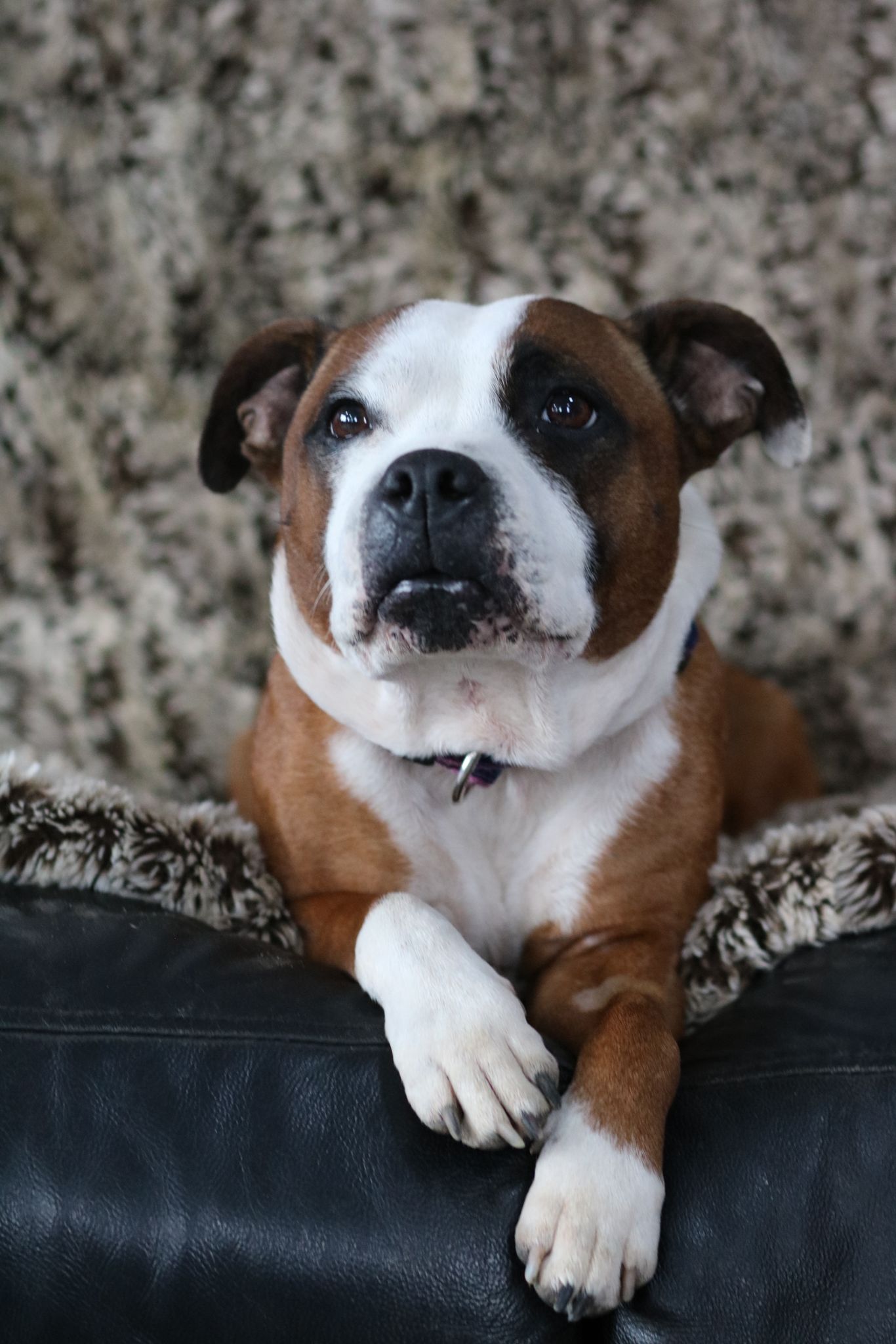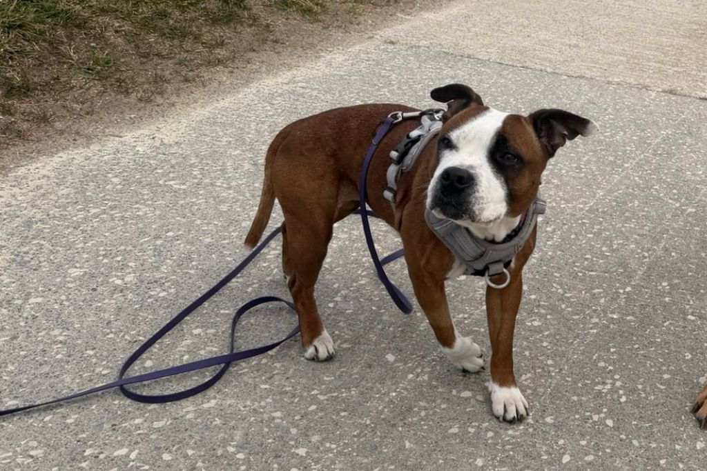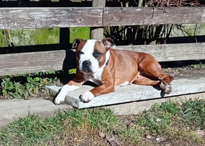 Côté caractère ? Une Staffie comme on les aime : tendre, proche de l’humain, expressive et pleine de personnalité.