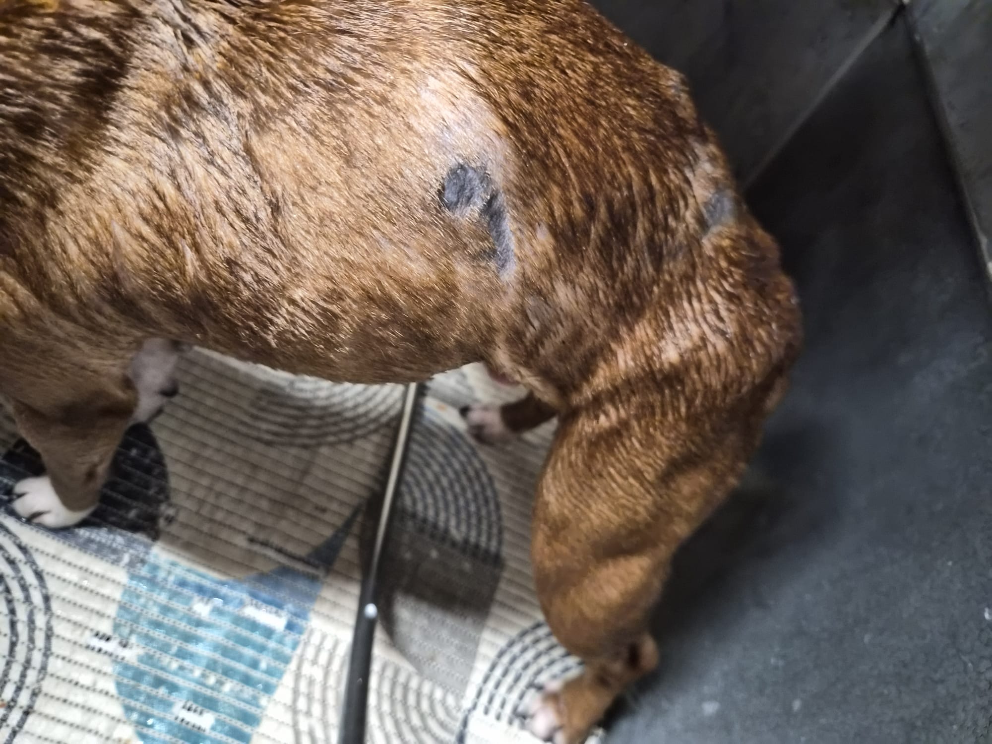 Hela, 7 ans, adorable Staffie que nous avons accueillie avec son copain Marvel en urgence. Leur famille traverse une détresse profonde… et quand la vie vacille, ce sont parfois les soins vétérinaires qui passent en dernier. Ici, pas de jugement, juste deux chiens à aider et beaucoup d’amour à leur donner.