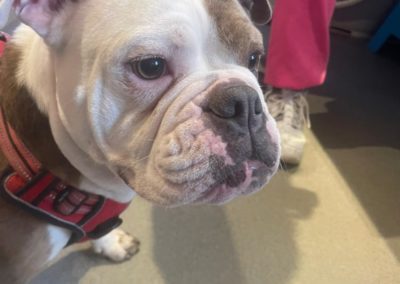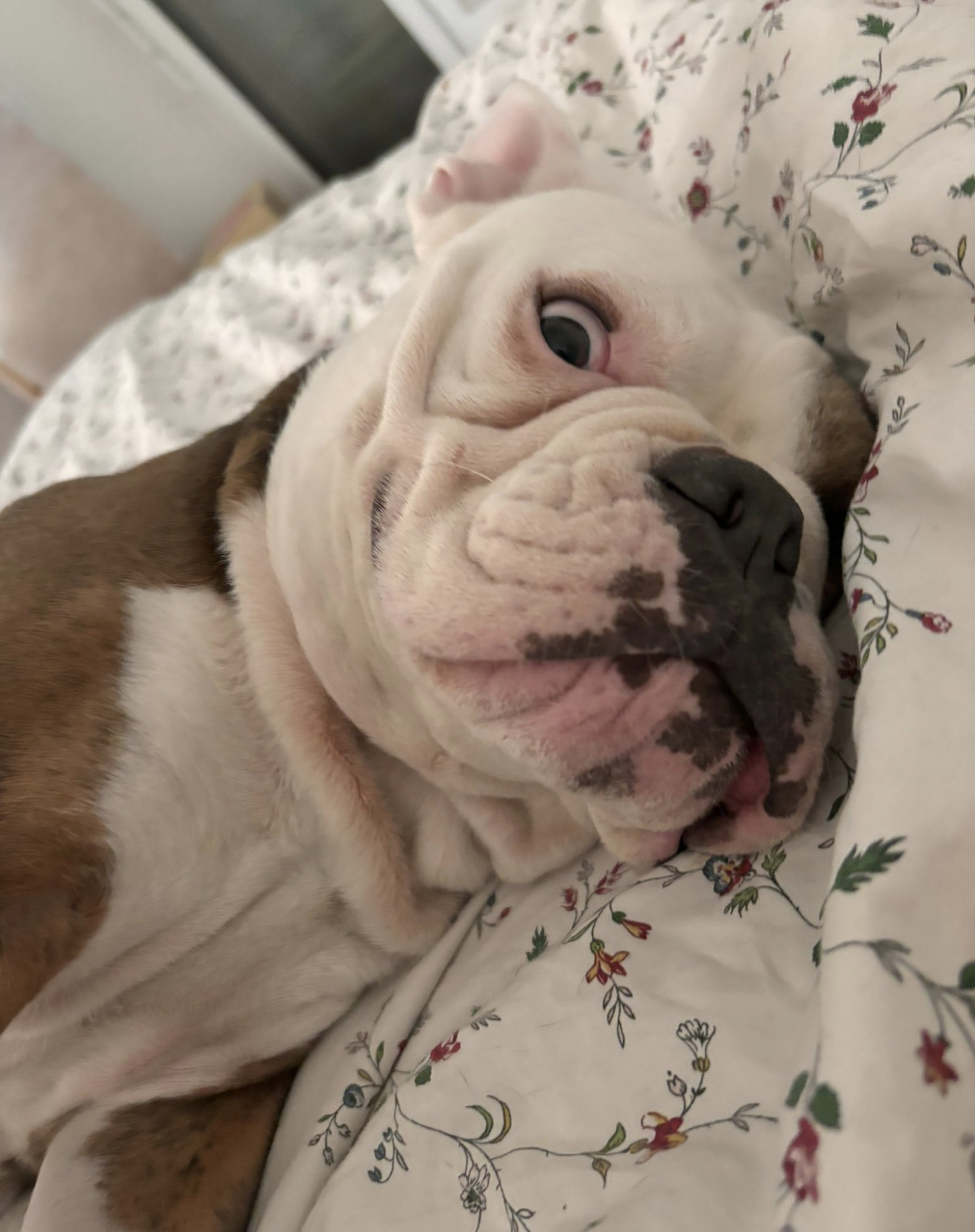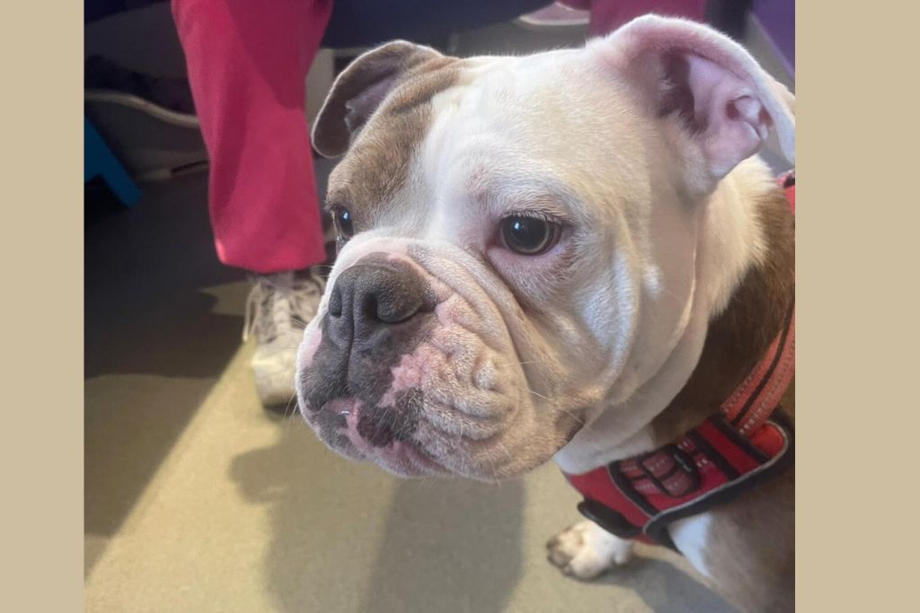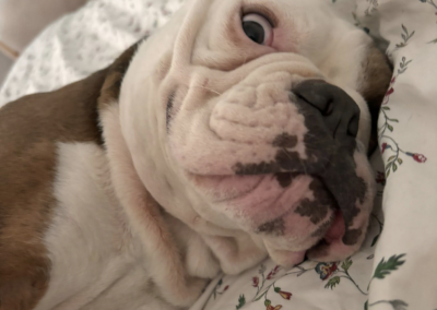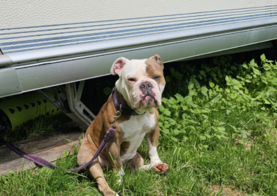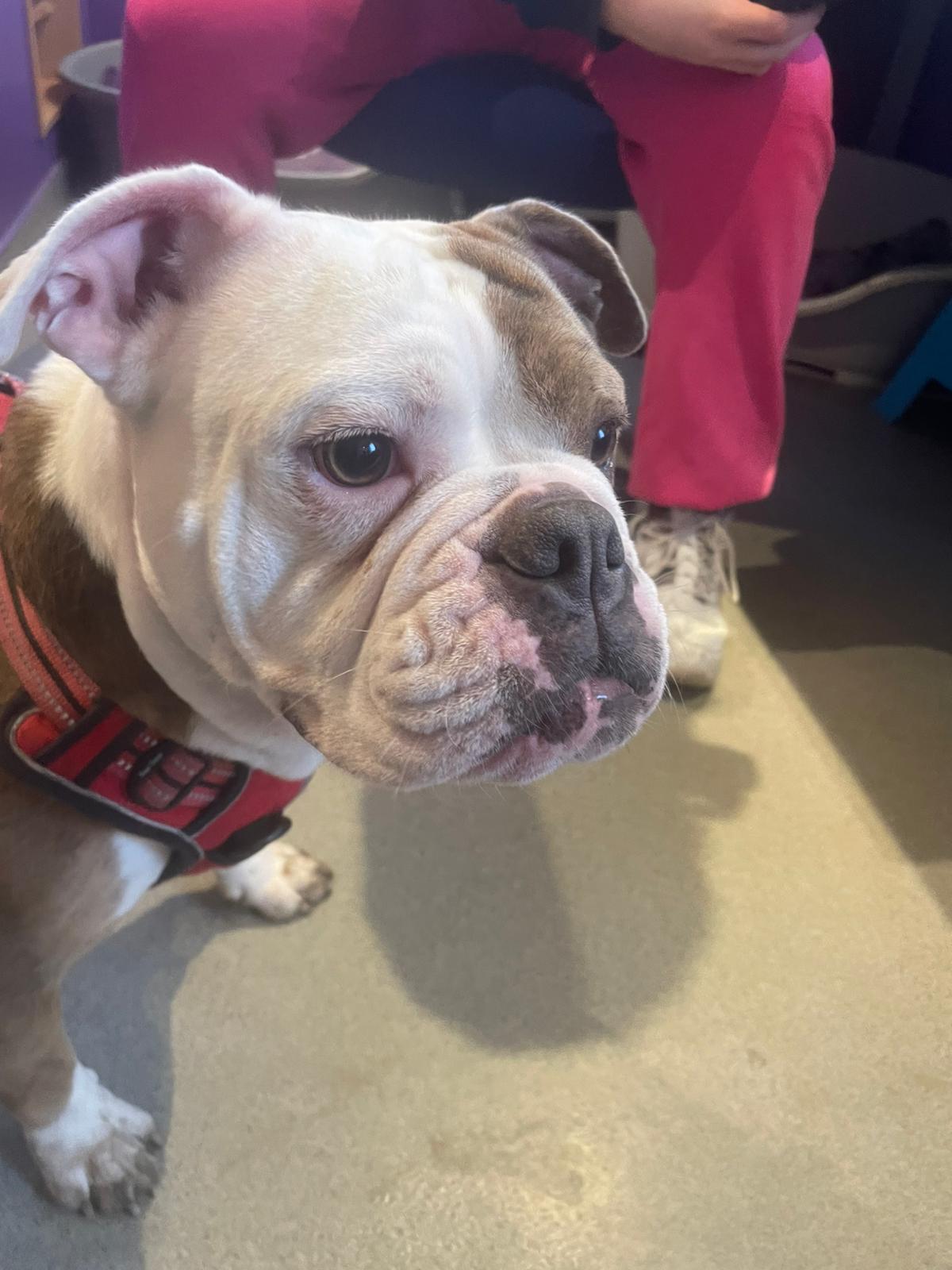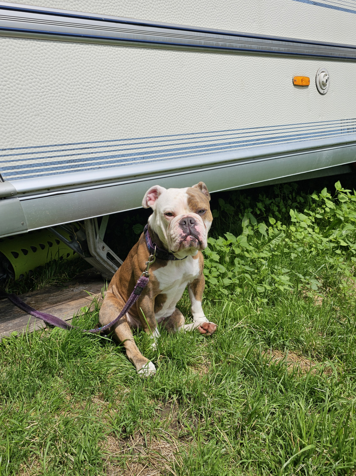 Lagertha est une Old English Bulldog de 4 ans et demi, à la robe fauve et blanche, non stérilisée. C’est une chienne vive, dynamique et pleine d’énergie. Elle est ok avec les enfants et avec ses congénères, mais ne connaît pas les chats.