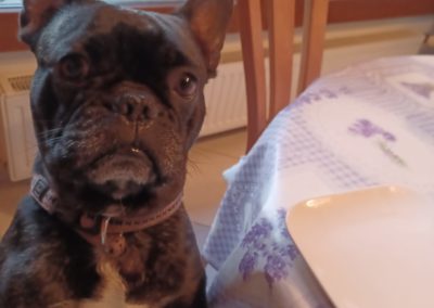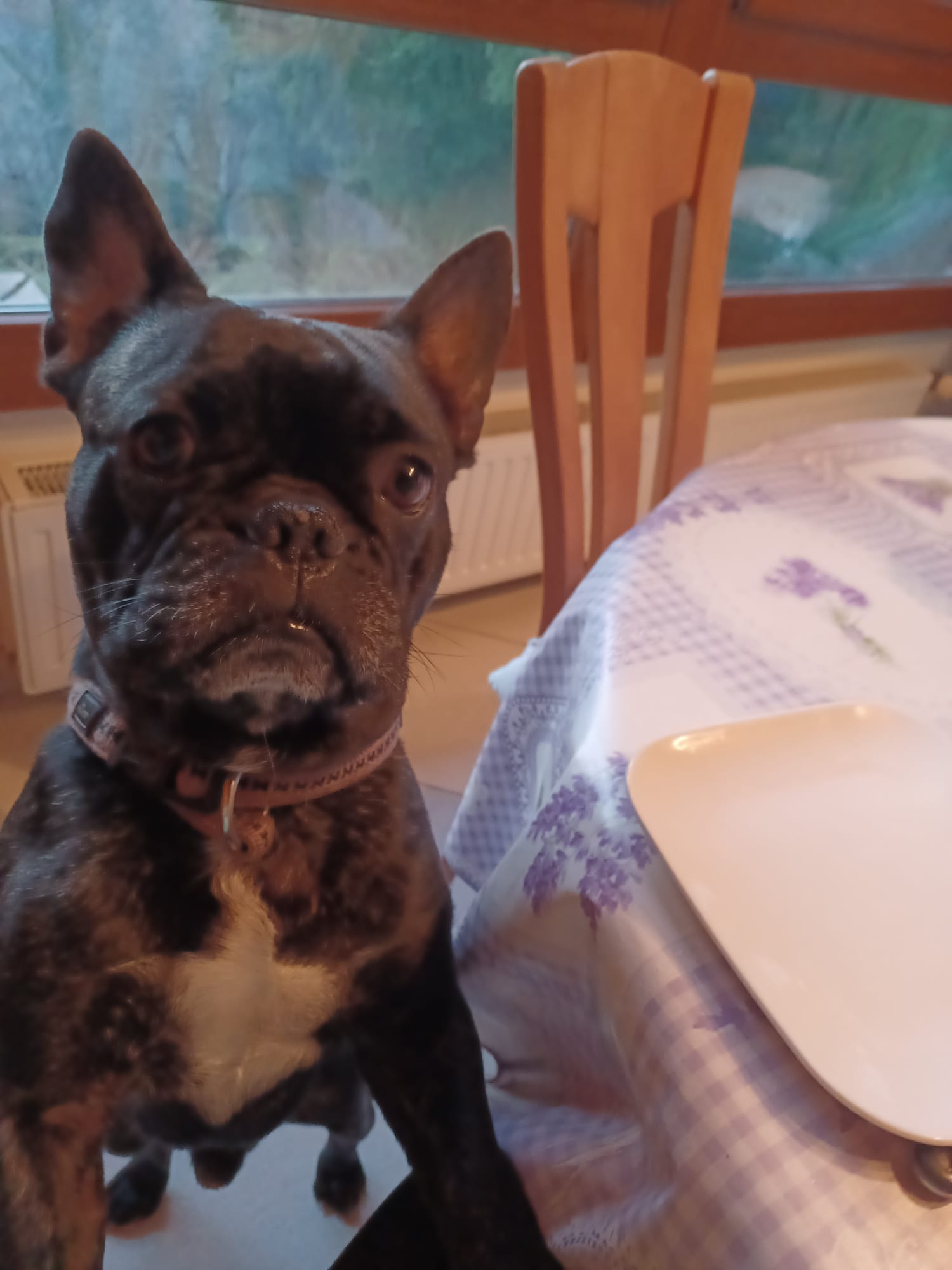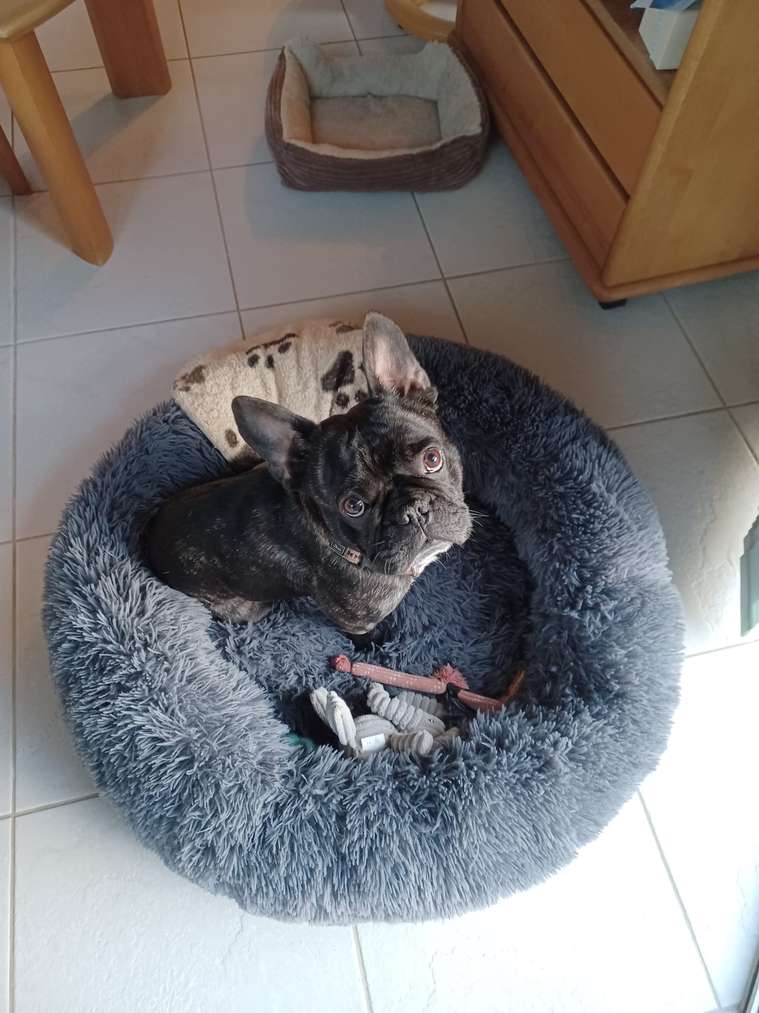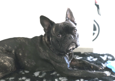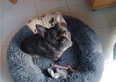 Nino est un bouledogue français mâle de 3 ans, non castré, à la jolie robe bringée. C’est un boubou super sympa, facile à vivre et bien dans ses pattes. Il est ok avec tout le monde : congénères, enfants et même les chats — un vrai diplomate sur quatre pattes.
