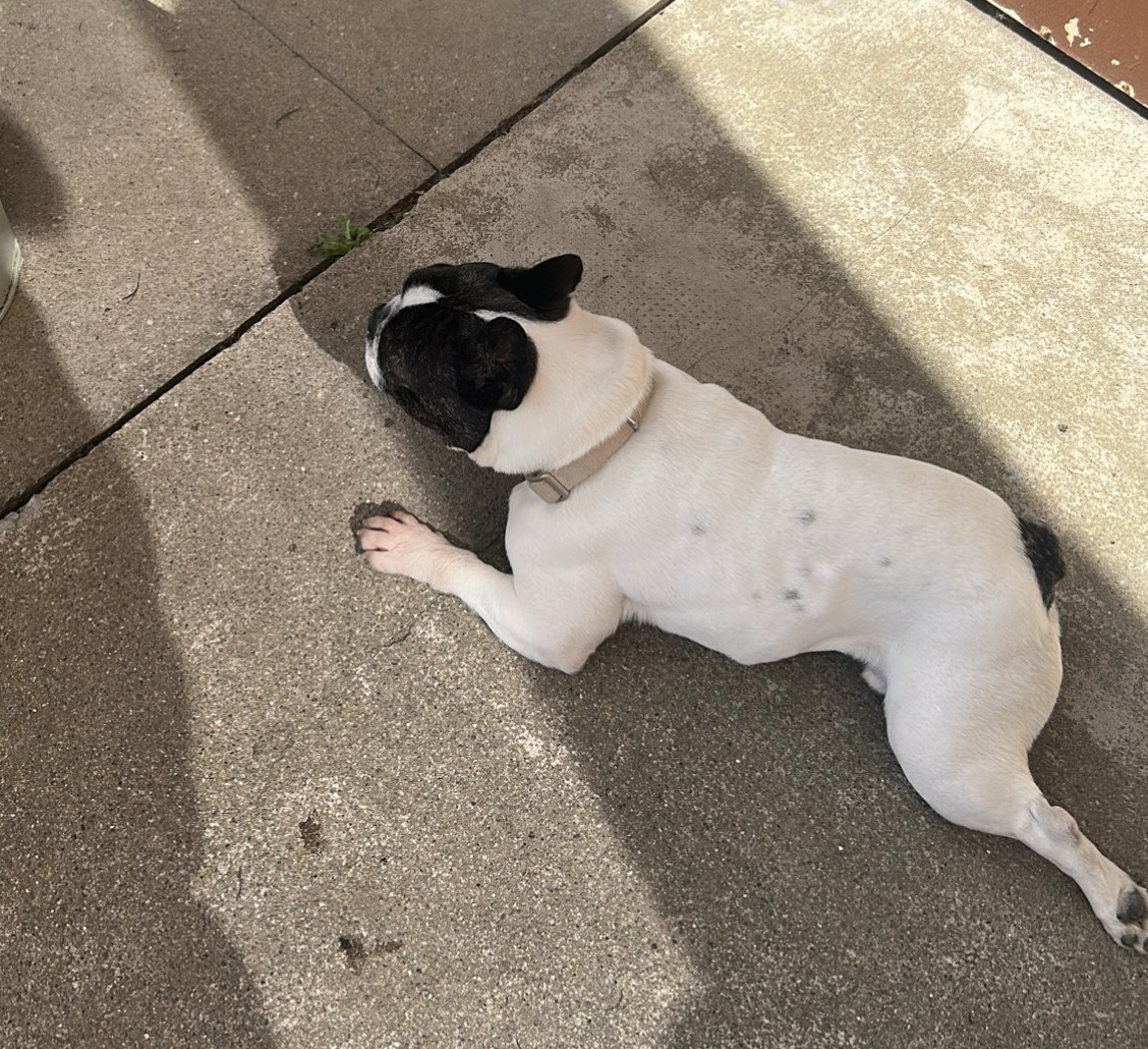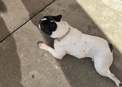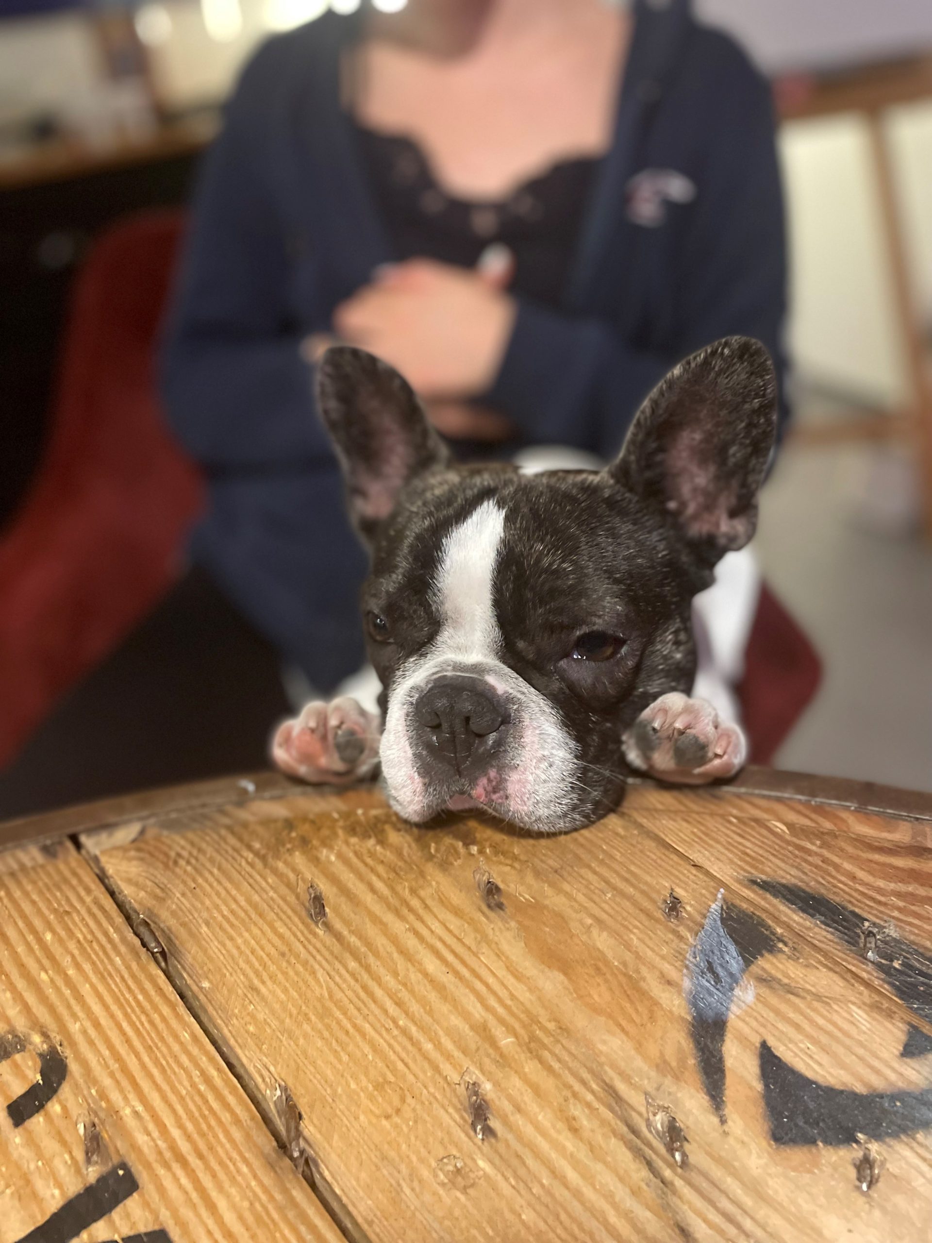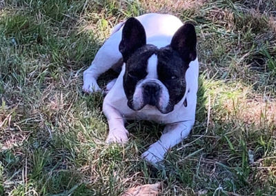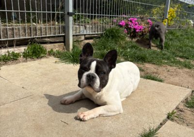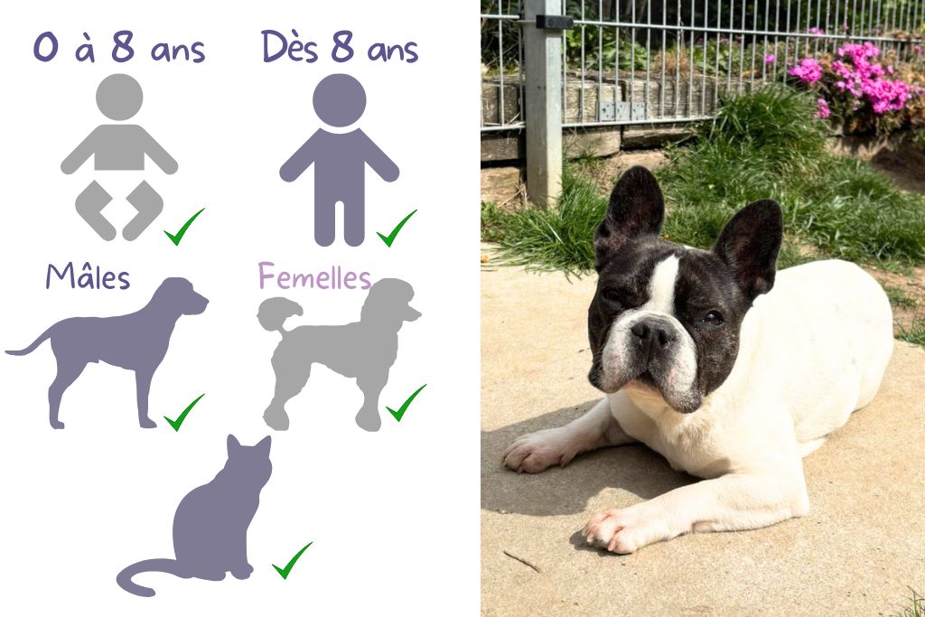Rocky est un bouledogue français mâle de 7 ans, à la jolie robe caille. Il s’entend avec tout le monde, congénères, chats et enfants.