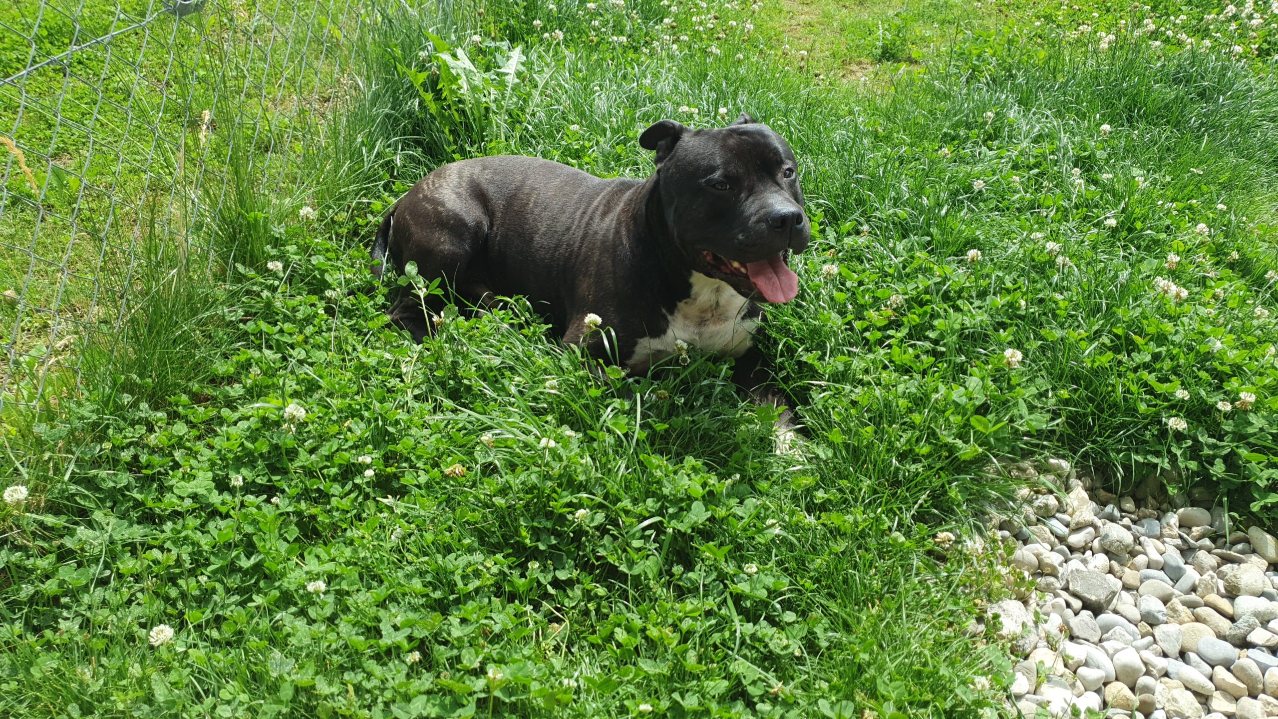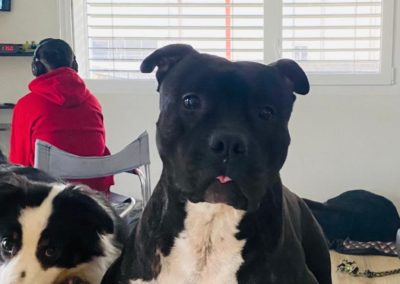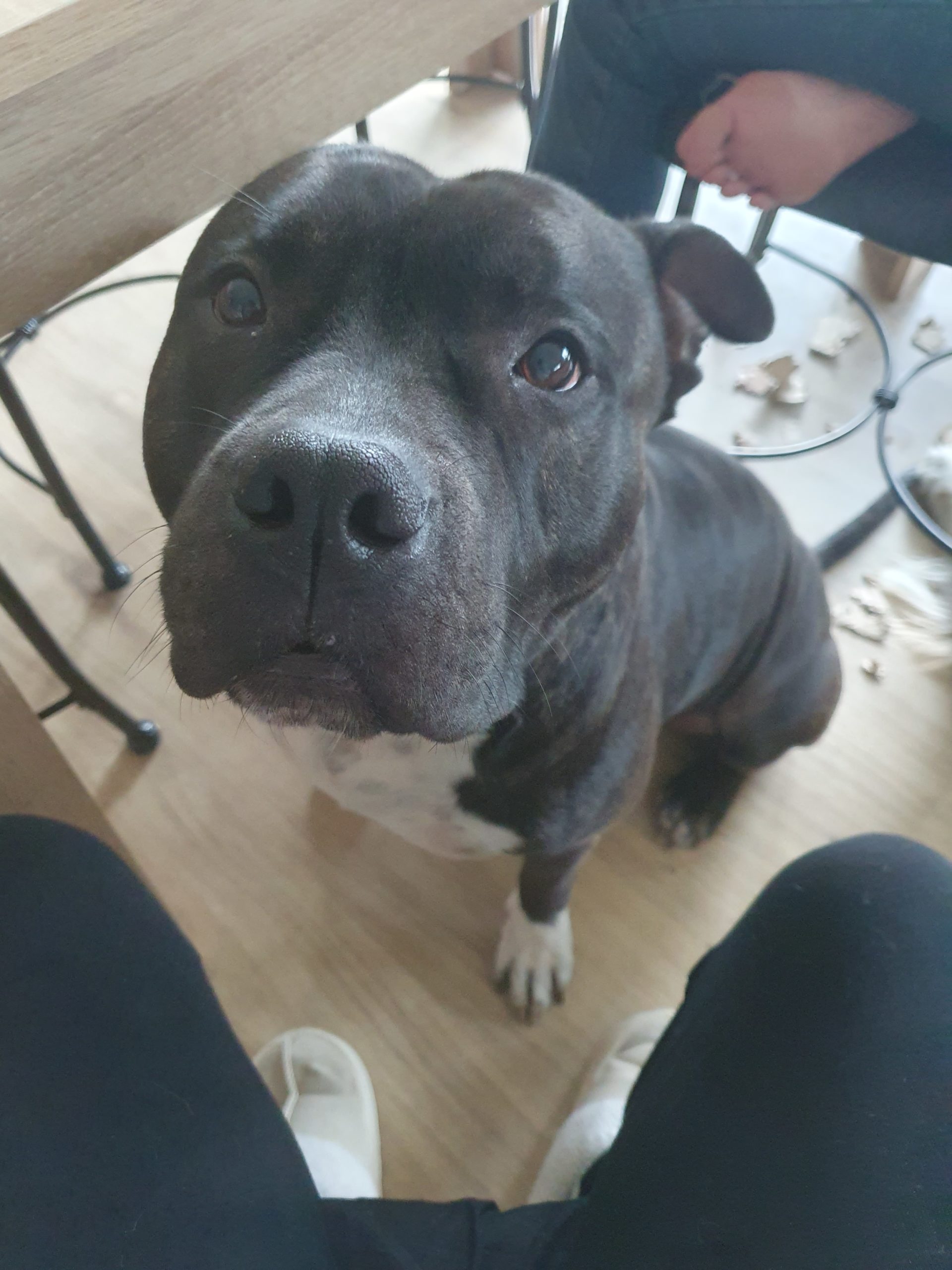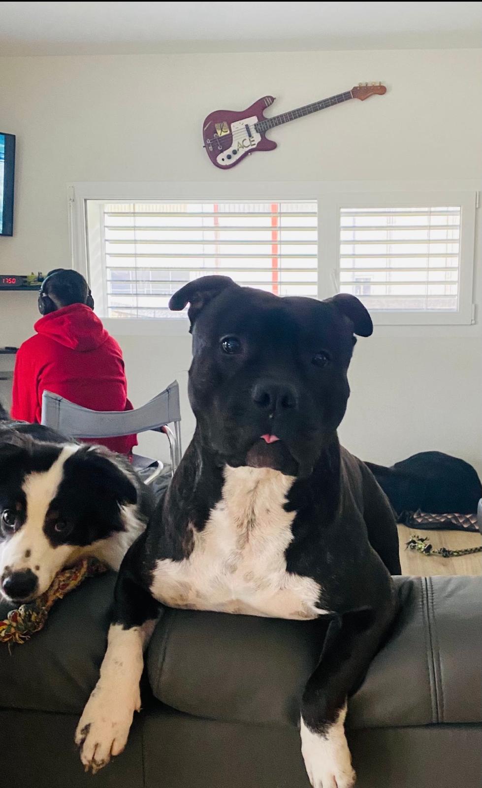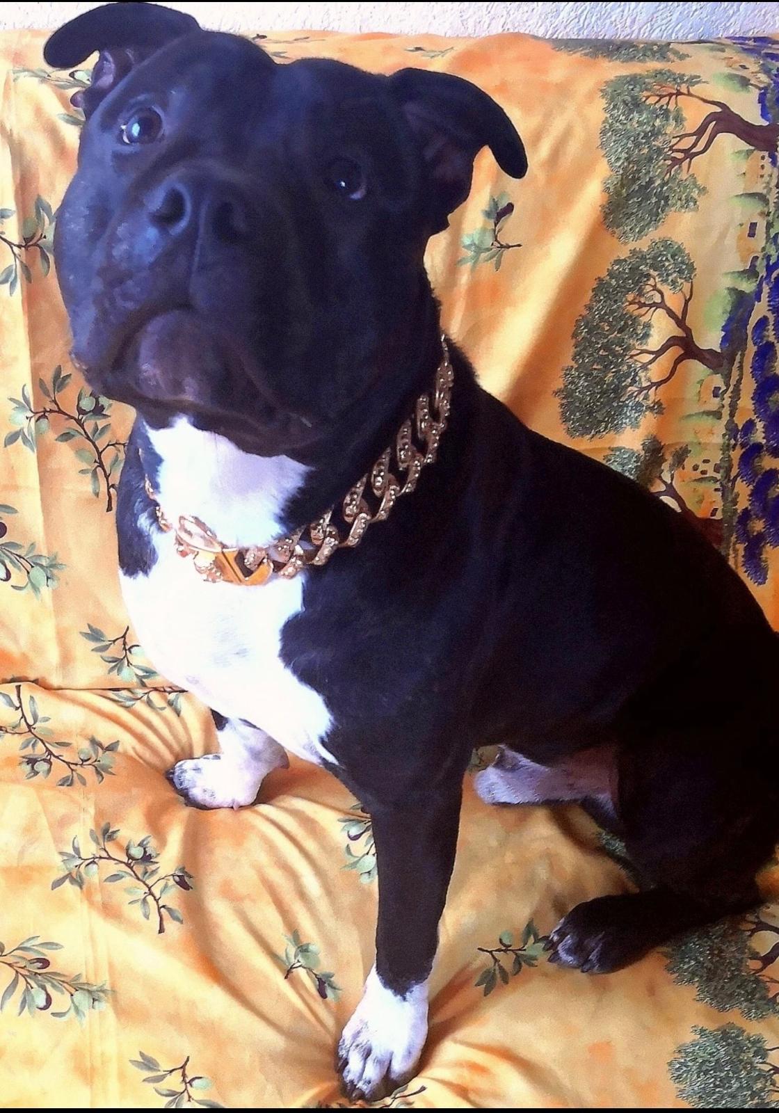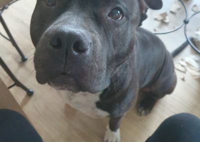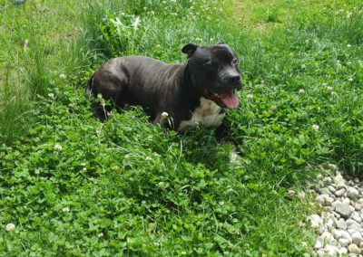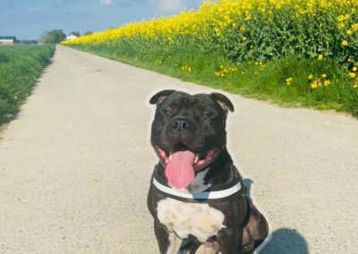 Rosko est un Amstaff de 6 ans, castré, de couleur bringée avec panachure blanche. C’est un chien équilibré et agréable à vivre, qui s’entend bien avec les chiens et les chats. Une petite précision toutefois, les mâles non castrés ne sont pas ses meilleurs amis.