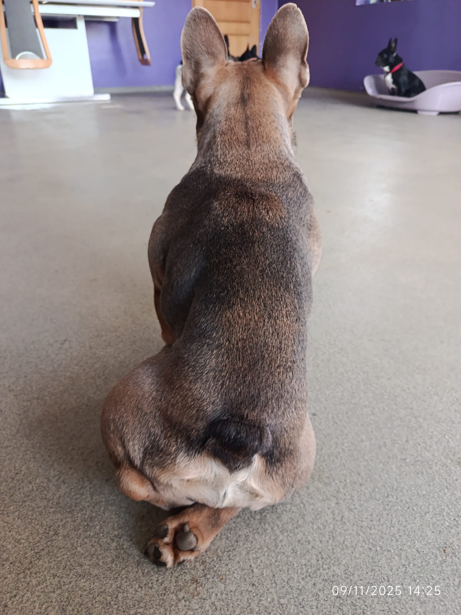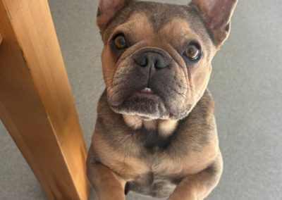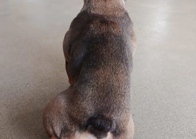 Simone est une bouledogue française de 5 ans, retraitée d’élevage, stérilisée, à la magnifique robe fauve bleu. C’est un amour de boubou, douce et attachante, qui s’entend avec tout le monde, même si elle préfère garder une petite réserve face aux grands chiens.