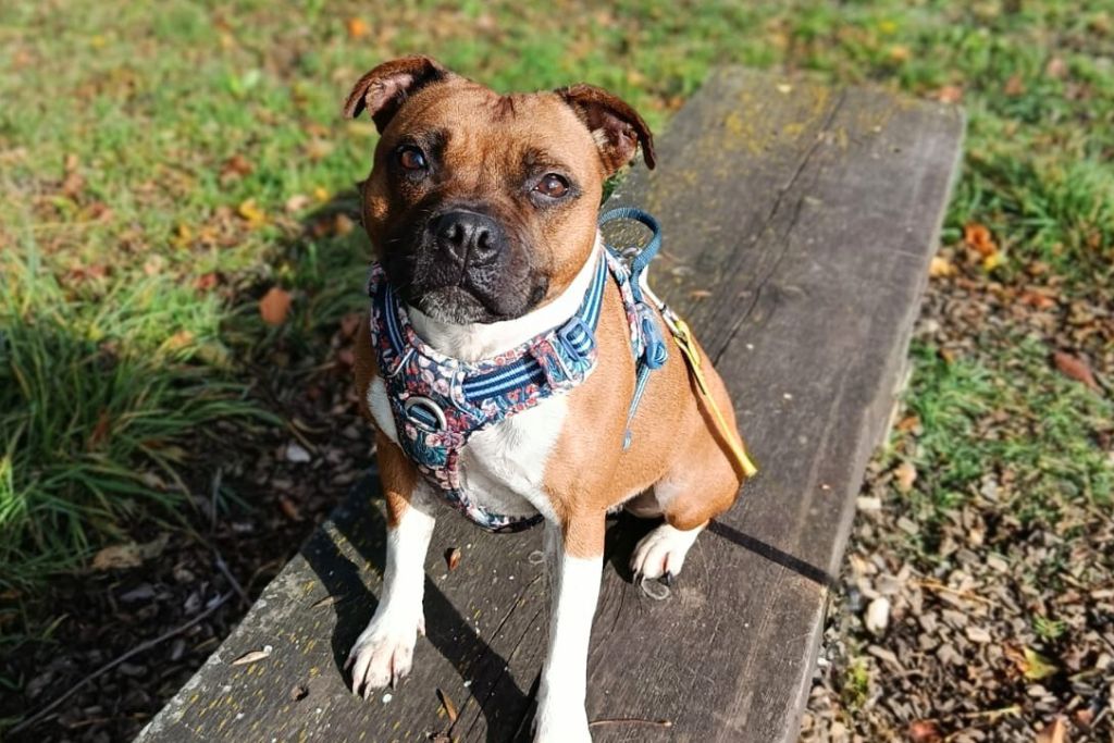 Contrairement à beaucoup de ses congénères Staffies, elle est calme, équilibrée et adore la sérénité d’un environnement tranquille. Très douce avec les humains, elle raffole des moments de complicité, des câlins et de la présence bienveillante de ses humains.