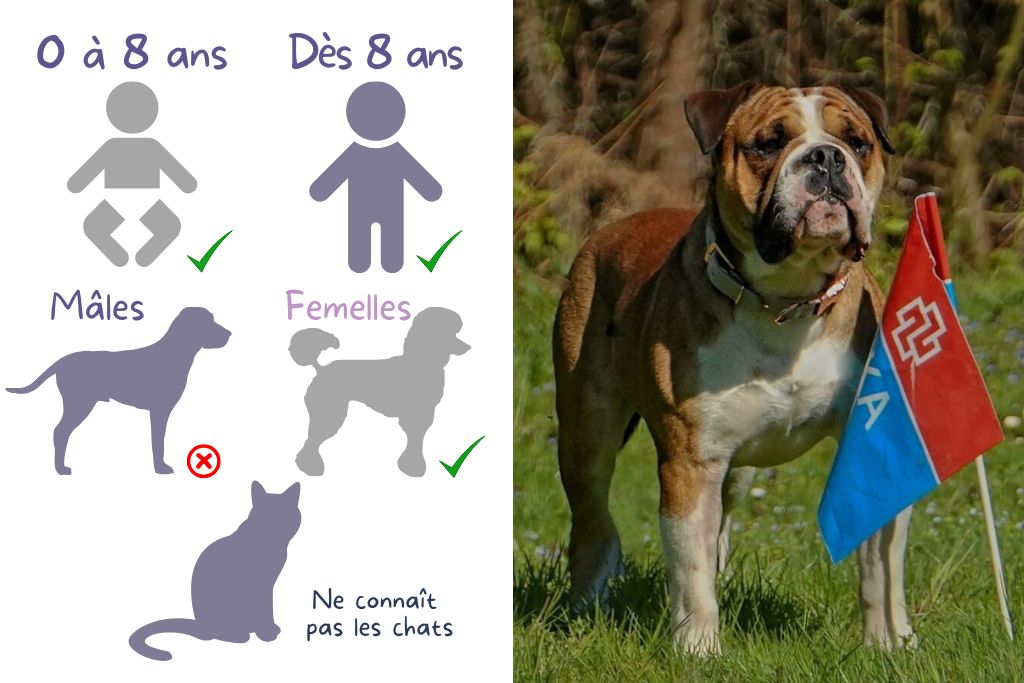 Ugo, 2 ans, nous a été cédé suite à l’arrêt d’un élevage. C’est un adorable bulldog continental, gentil avec tout le monde et toujours prêt pour un moment de tendresse ou de jeu.
