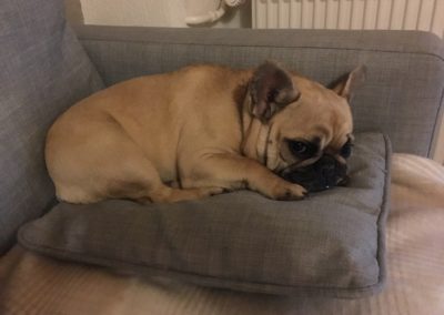 Yuna est une magnifique femelle bouledogue français de presque 2,5 ans. C’est une chienne pleine de vie, très sociable et hyper câline. Elle adore les balades, les jeux avec ses congénères, mais peut facilement être possessive envers les humains. Elle n’est pas du tout ok chats. Elle a également l’habitude des enfants de tous âges.